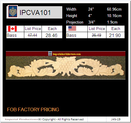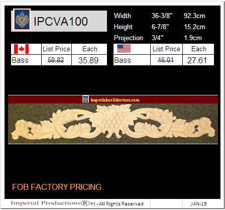 | The IPNP4761 is a cartouche center with left and right Scrolls 46-5/8" wide x 9-5/16" (23.7cm) high. It is available in ArchPolymerTM for interior and exterior use. It is available custom made in GRGNeoPlasterTM and Hardwoods. We can create Custom variations to the size and design. | |||