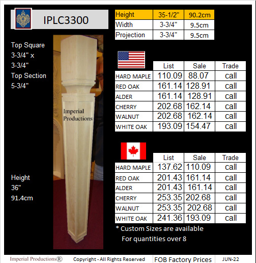 Colonial Kitchen Post 36" x 3-1/2"