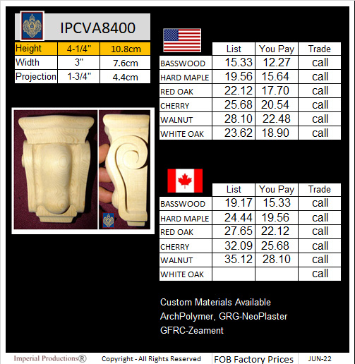 capitals for pilasters. Unlike corbels they tend to have less depth.